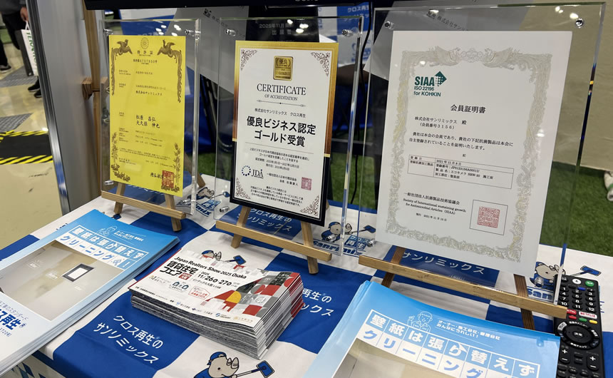 また、ブース正面には、「優良ビジネス認定証」などを掲示し、第三者評価による信頼性の高さもアピールされていました。